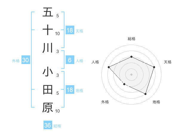 五十川 小田原さんを姓名の画数から五運を鑑定