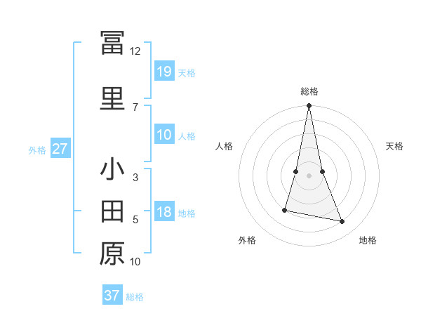 冨里 小田原さんを姓名の画数から五運を鑑定