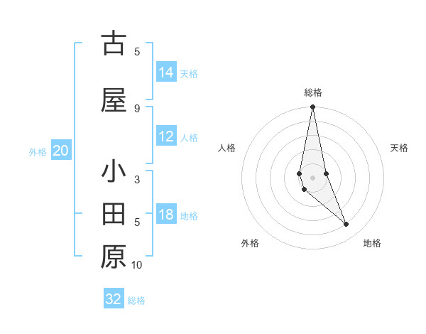 古屋 小田原さんの総格は32画の5点!