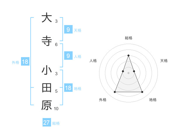 大寺 小田原さんの総格は27画の3点!