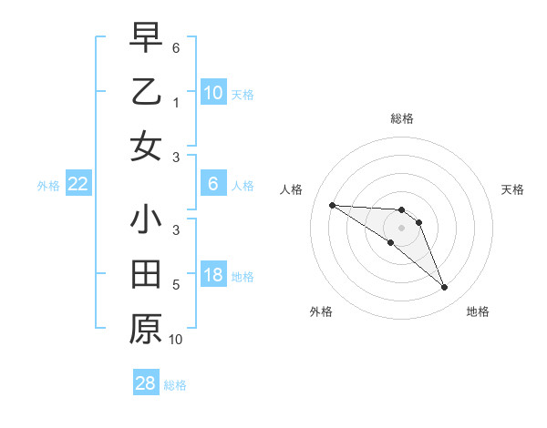 早乙女 小田原さんの総格は28画の1点!