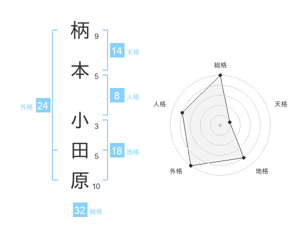 柄本 小田原さんの総格は32画の5点!