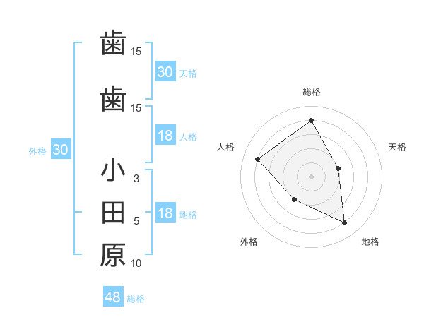 歯歯 小田原さんの天格は30画の2点!