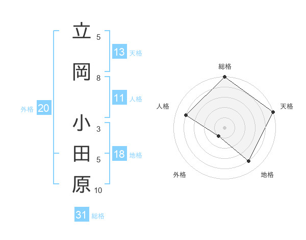 立岡 小田原さんの総格は31画の5点!