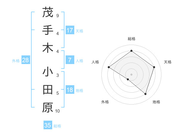 茂手木 小田原さんの総格は35画の4点!