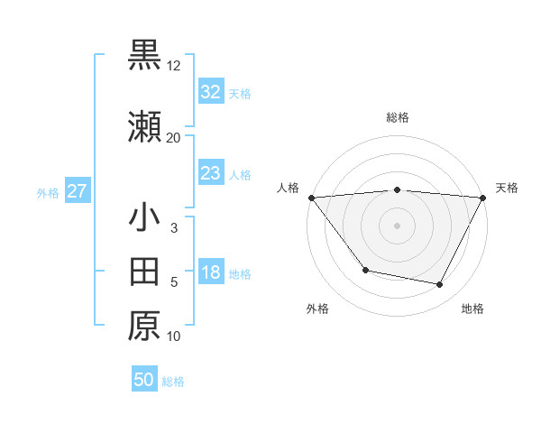 黒瀬 小田原さんを姓名の画数から五運を鑑定
