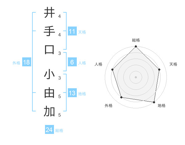 井手口 小由加さんの総格は24画の5点!