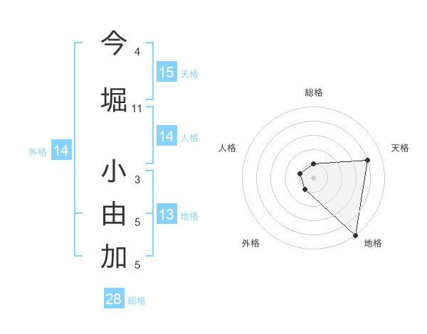 今堀 小由加さんの総格は28画の1点!