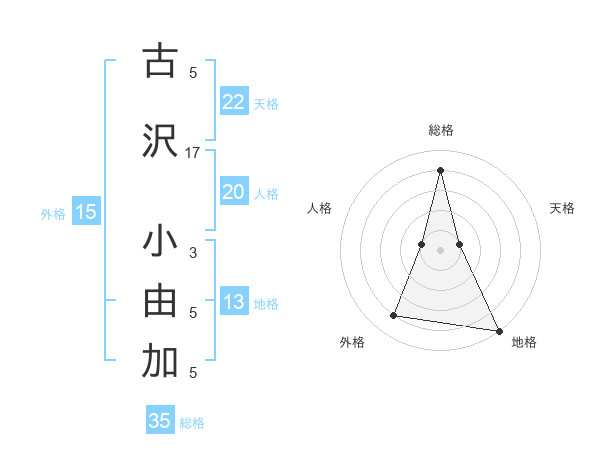 古沢 小由加さんを姓名の画数から五運を鑑定