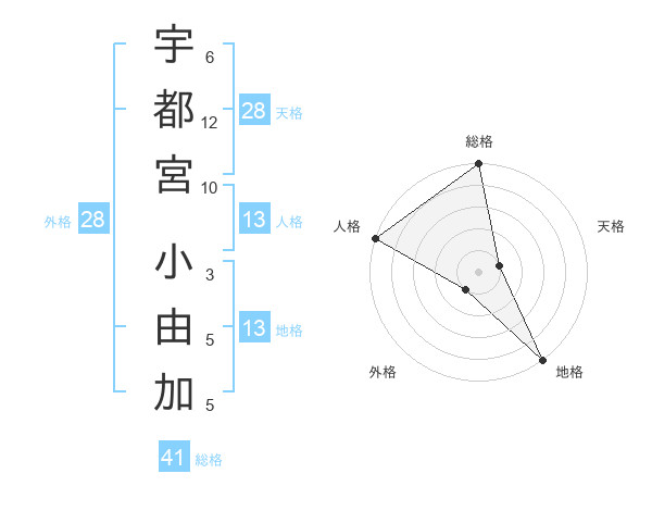 宇都宮 小由加さんを姓名の画数から五運を鑑定