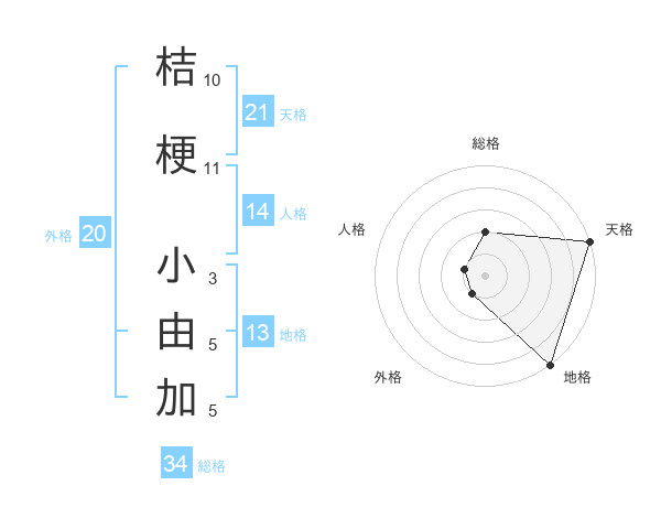 桔梗 小由加さんを姓名の画数から五運を鑑定