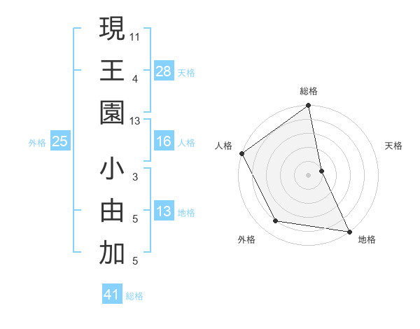 現王園 小由加さんを姓名の画数から五運を鑑定