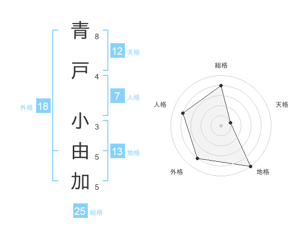 青戸 小由加さんを姓名の画数から五運を鑑定