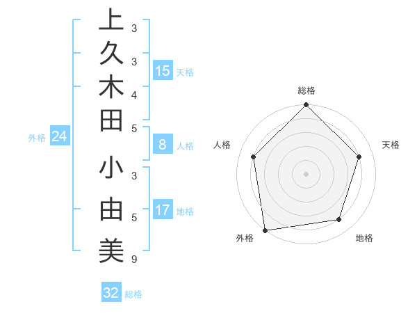 上久木田 小由美さんを姓名の画数から五運を鑑定