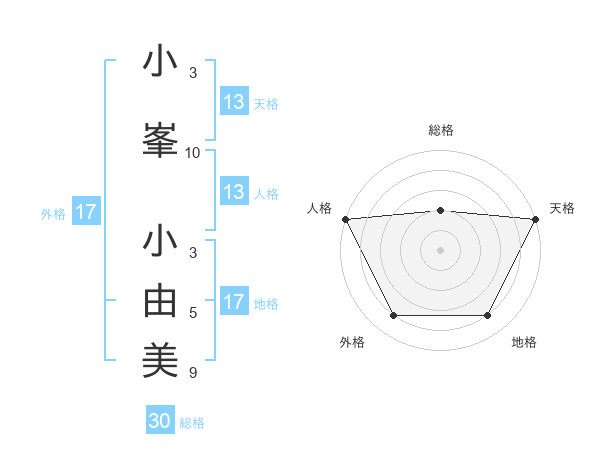 小峯 小由美さんを姓名の画数から五運を鑑定