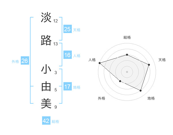 淡路 小由美さんを姓名の画数から五運を鑑定