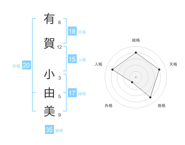 有賀 小由美さんを姓名の画数から五運を鑑定