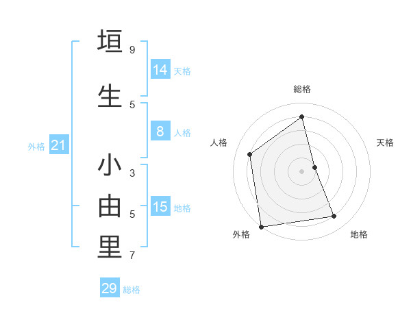 垣生 小由里さんを姓名の画数から五運を鑑定