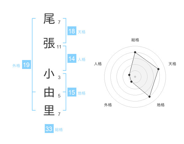 尾張 小由里さんを姓名の画数から五運を鑑定