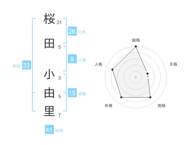 桜田 小由里さんの総格は41画の5点!