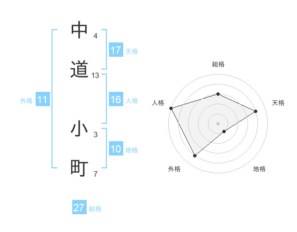 中道 小町さんの天格は17画の4点!