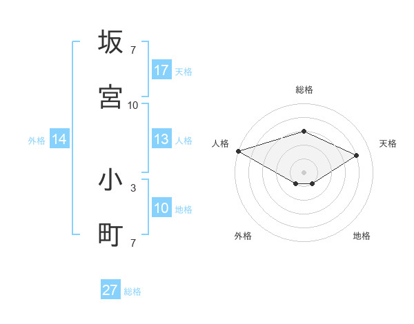 坂宮 小町さんの総格は27画の3点!