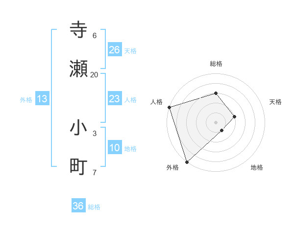 寺瀬 小町さんを姓名の画数から五運を鑑定