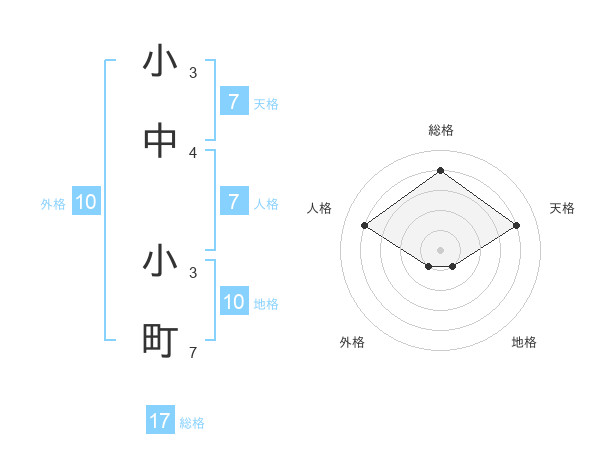 小中 小町さんの総格は17画の4点!