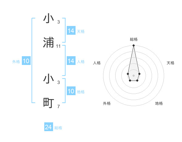 小浦 小町さんの総格は24画の5点!