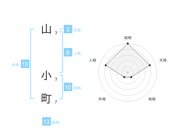 山 小町さんの総格は13画の5点!