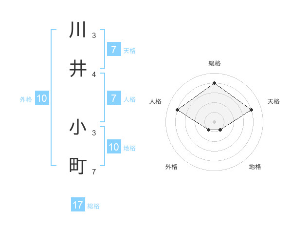 川井 小町さんの総格は17画の4点!