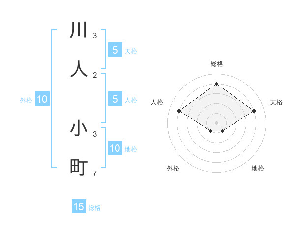 川人 小町さんの総格は15画の4点!
