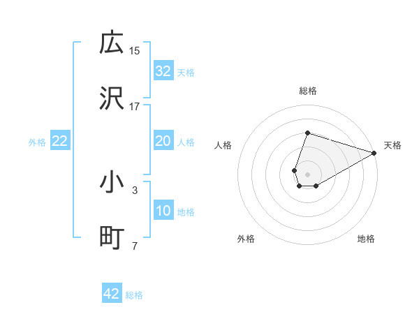 広沢 小町さんの外格は22画の1点!