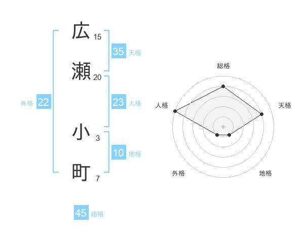 広瀬 小町さんを姓名の画数から五運を鑑定