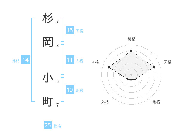 杉岡 小町さんの総格は25画の4点!