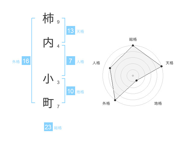 柿内 小町さんの総格は23画の5点!