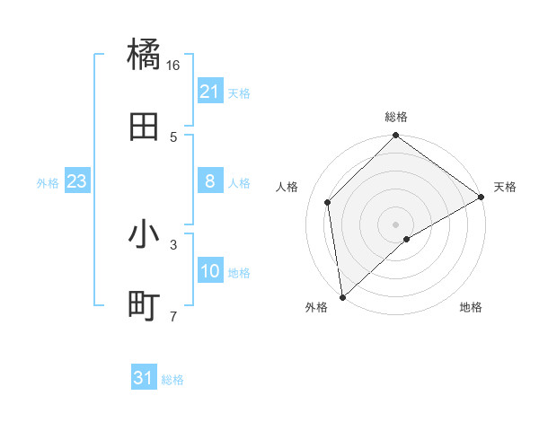 橘田 小町さんの天格は21画の5点!