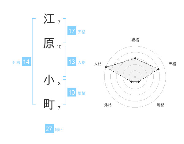 江原 小町さんの天格は17画の4点!