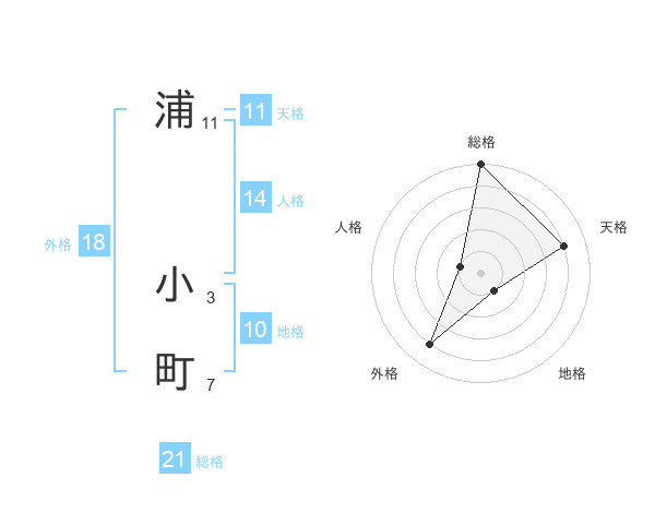 浦 小町さんの天格は11画の4点!