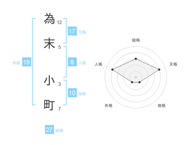 為末 小町さんの総格は27画の3点!