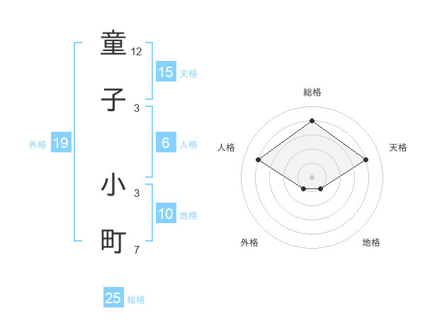 童子 小町さんの総格は25画の4点!