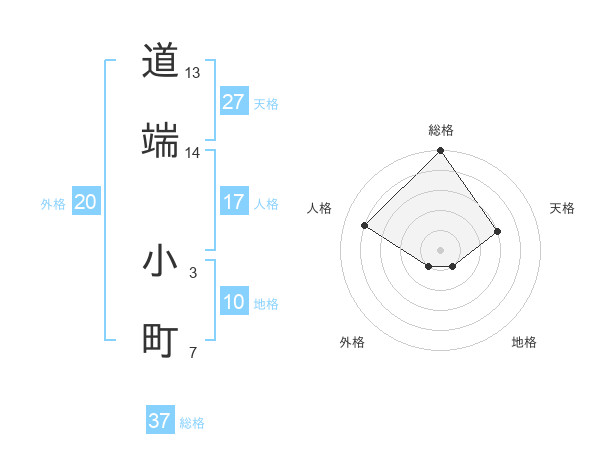 道端 小町さんの総格は37画の5点!