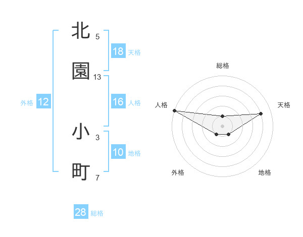 北園 小町さんの総格は28画の1点!