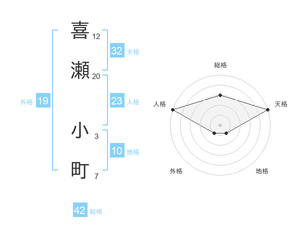 喜瀬 小町さんを姓名の画数から五運を鑑定