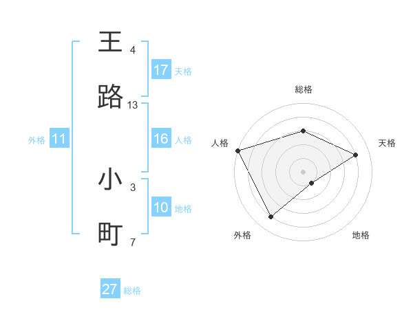 王路 小町さんの天格は17画の4点!