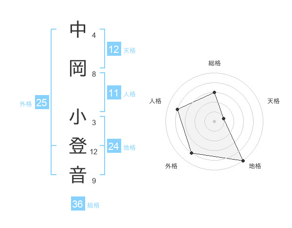 中岡 小登音さんを姓名の画数から五運を鑑定