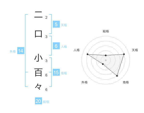 二口 小百々さんの総格は20画の1点!