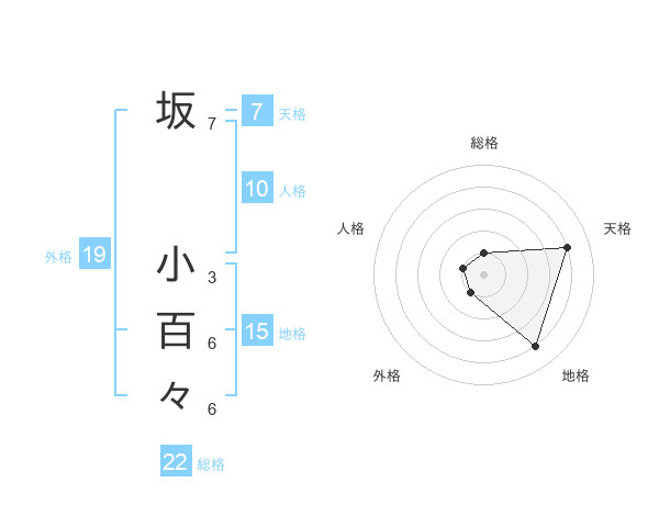 坂 小百々さんの総格は22画の1点!