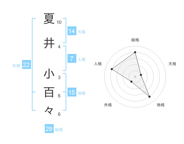 夏井 小百々さんの総格は29画の4点!