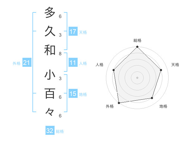 多久和 小百々さんを姓名の画数から五運を鑑定